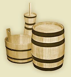 Anwendung in damaligen Wasserleitungssystemen. Zur Erzeugung der genannten Gegenständen dienten verschiedene Holzsorte: Kiefer-, Tanne-, und edle Eichenholz.Die Böttcherei bildete sich als ein gesonderter Handwerkszweig wahrscheinlich im Frühmittelalter heraus. Schon damals existierte neben der spezialisierten Böttcherei diese, die uns näher steht - häusliche Böttcherei. Heutzutage finden die Fässer immer Anwendung als Gefäße zur Lagerung der besten Weinsorten und werden bis jetzt als Alltagsgeschirr in den Haushalten benutzt. Die Firma "Beczka Polska" (Das Polnische Fass) repräsentiert eine Gruppe der polnischen Böttchern, die seit vielen Generationen Fässer, Fässchen, Bottiche nach der alten Technologie herstellen. Das sind sowohl Gebrauchswaren, als auch Kunstwerke. Die Hauptidee unserer Tätigkeit ist die Absicht, Dir, Lieber Kunde, diese Geschichte mit unseren Produkten näherzubringen, die immerwieder mit Hilfe von diesen traditionellen Methoden, wie hunderte Jahre früher, auf den polnischen Gebieten hergestellt werden. |